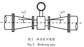 流量計安裝位置的上下游直管段一般遵循前十后五原則。要求前直管段不小于10D,后直管段不小于5D。如果在上游管段注入其他化學物質,則容易引起導電。流量計應盡可能遠離主進口至少20D(如圖1所示);如果污水流量計的上下游使用減壓管,則減壓管的中心錐角α應小于15°