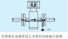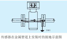 a.傳感器在金屬管道上安裝(金屬管道內壁沒有絕緣涂層),按下圖接地。