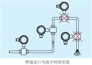 當出口為放空狀態時,傳感器不應安裝在管道放空之處,應安裝在較低處。