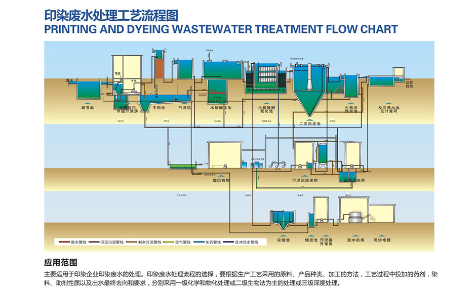無害化處理可分為:(1)物理處理方法包括沉淀法和吸附法。沉淀法主要去除廢水中的懸浮固體。吸附法主要去除廢水中溶解的污染物和脫色。 (2)化學處理方法包括中和法,凝結法和氧化法。中和法是調節廢水的酸堿度,也可以降低廢水的色度。混凝法是去除廢水中的分散染料和膠體物質。氧化方法是將廢水中的還原性物質氧化,使硫染料和還原染料沉淀。 (3)生物處理方法包括活性污泥法,生物轉盤法,生物轉鼓法和生物接觸氧化法。為了提高廢水質量并滿足排放標準或回收要求,通常采用幾種方法進行聯合處理。